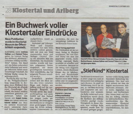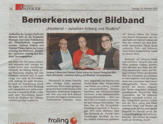 Das Buch ist bei der Langen Nacht der Museen am 3. Oktober 2015 im Klostertal Museum der Öffentlichkeit vorgestellt worden.